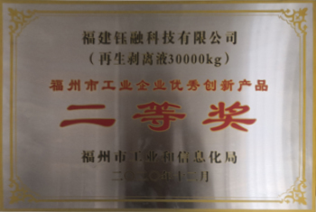 再生剥离液荣获福州市工业企业优秀创新产品二等奖