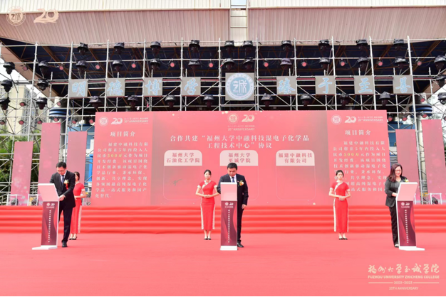 10月21日,时值福州大学至诚学院二十周年校庆,中融科技副总裁何碧芳、品牌部总监黄康祥受邀参加,并与福州大学至诚学院、福州大学石油化工学院签订了三方合作协议。在这一重要节点上,签订的这份协议,不仅是校企合作工作的一项重大成果,更是对科技兴企战略的深入贯彻。通过共享资源和优势,福州大学将充分利用其丰富的学术成果和人才资源,中融科技将发挥其在湿电子化学品新材料行业的项目、生产设备、市场信息等资源优势,共同组建“福州大学—福建中融科技有限公司湿电子化学品工程技术中心”(以下简称“中心”)。